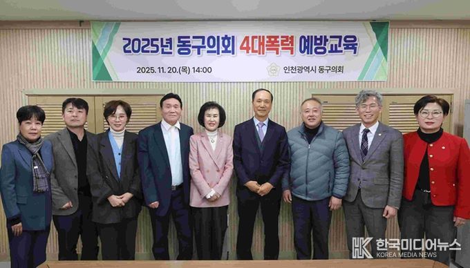 [ 한국미디어뉴스 이원희 기자 ] 인천 동구의회는 지난 20일 의회 세미나실에서 구의원과 의회사무과 공무원을 대상으로 ‘4대 폭력 예방교육’을 실시했다.