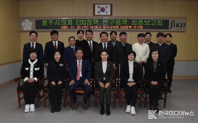 김은숙 대표의원은 “이번 연구는 단순한 선언이 아닌, 청주시 행정이 실질적으로 ESG 가치를 담아낼 수 있도록 진단하고 정리한 첫걸음이었다”며 “이제부터는 이를 바탕으로 실효성 있는 정책을 마련해나가는 단계로 나아가야 한다”고 말했다.