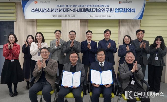 [ 한국미디어뉴스 이보영 기자 ] 수원시청소년청년재단(이사장 최종진)과 차세대융합기술연구원(원장 김연상)은 11월 20일, 청소년·청년의 미래 역량 강화와 성장 지원을 위한 업무협약(MOU)을 체결했다.