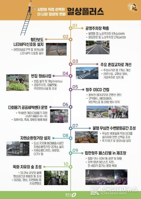 [ 한국미디어뉴스 김풍옥 기자 ] 청주시는 시민이 직접 평가한 ‘일상플러스+’ 우수시책 최종 선정 결과를 21일 발표했다.