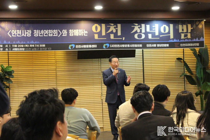 [ 한국미디어뉴스 이원영 기자 ] (사)인천사랑운동시민협의회는 지난 11월 20일(목) 샤펠드미앙에서 인천 청년 100여 명이 참여한 가운데 〈인천사랑 청년연합회〉 ‘인천 청년의 밤’을 성황리에 개최했다고 밝혔다.
