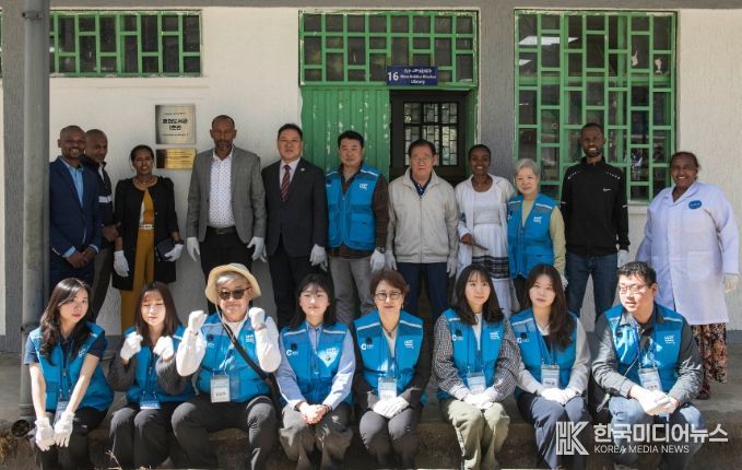 [ 한국미디어뉴스 이원영 기자 ] 춘천시 자매도시 에티오피아 아디스아바바를 방문 중인 춘천시와 춘천시민국제협력봉사단은 현지시간 21일 코커베츠바 고등학교에서 춘천도서관 1호관을 개관했다.