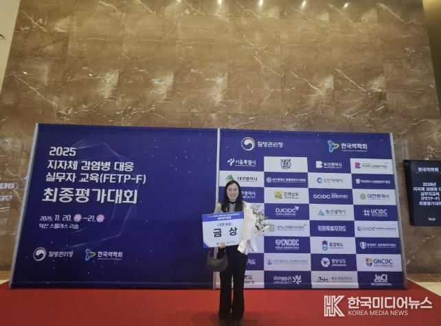 20~21일 스플라스 리솜(예산군)에서 열린 2025년 FETP-F(감염병 대응 실무자교육) 담당자 과정 최종 평가대회에서는 요양원 CRE 집단 발생의 위험 요인을 분석하고, 이에 대한 보건소 예방·관리 중재 활동을 설계·시행한 사례를 공유해 금상을 받았다.
