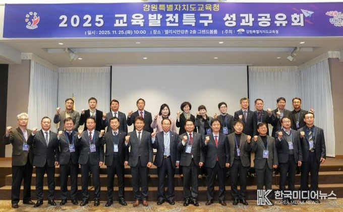 [ 한국미디어뉴스 이원영 기자 ] 강원특별자치도교육청은 11월 25일 오전 10시, 춘천시 남산면 엘리시안강촌에서 ‘2025 교육발전특구 성과공유회’를 개최했다.