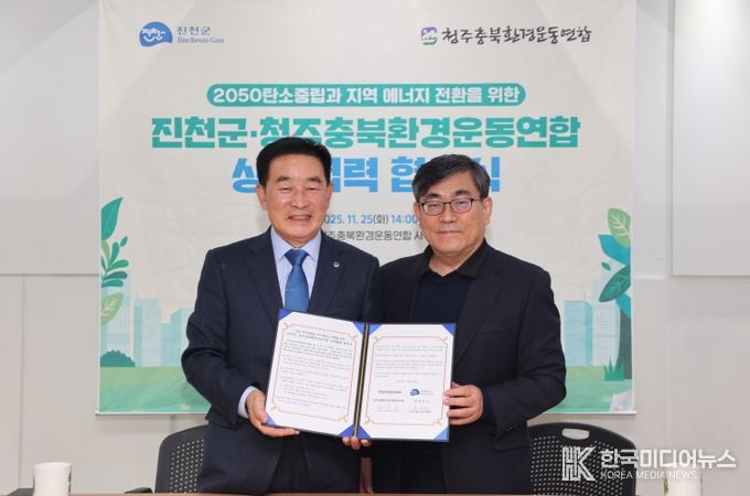 [ 한국미디어뉴스 김풍옥 기자 ] 충북 진천군은 25일 청주충북환경운동연합 사무실에서 ‘2050 탄소중립 및 지역에너지 전환 실현을 위한 상생협력 협약’을 체결했다.