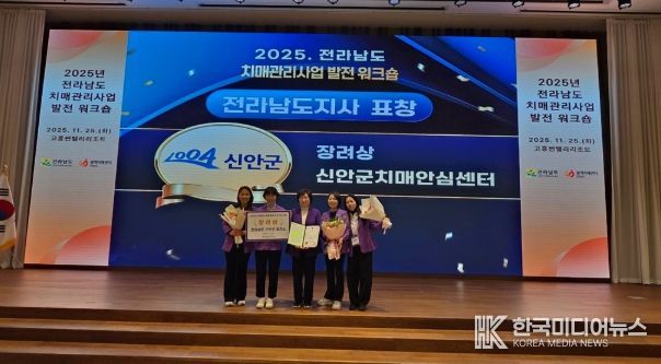 [ 한국미디어뉴스 이종철 기자 ] 신안군 치매안심센터가 25일 고흥군에서 열린 ‘2025년 전라남도 치매관리사업 발전대회’에서 도내 22개 시·군 보건소 중 우수기관으로 선정돼 전라남도지사 기관표창을 수상했다.