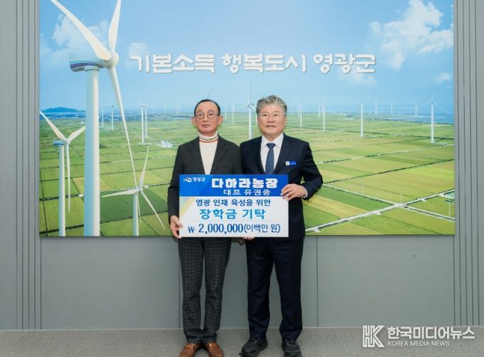 기탁식에서 다하라농장 대표는 “영광군 학생들의 학업과 꿈을 키우는 데 사용해 주시기 바란다. 앞으로도 지역 인재 양성을 위한 다양한 활동을 이어가겠다”라고 밝혔다.