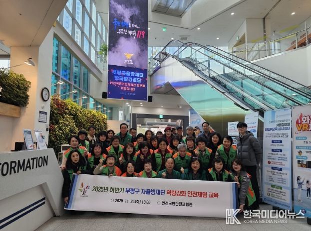 [ 한국미디어뉴스 양선희 기자 ] 부평구는 지난 25일 인천국민안전체험관에서 ‘2025년도 하반기 부평구 지역자율방재단의 체험형 역량강화교육’을 진행했다.