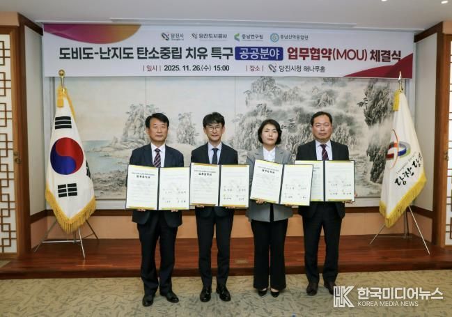 [ 한국미디어뉴스 이원영 기자 ] 당진시가 지난 9월 도비도-난지도 탄소중립 치유특구 투자협약 이후, 후속 조치로 당진도시공사, 충남연구원, 충남산학융합원과 손잡고 공공분야 사업 강화에 나선다.