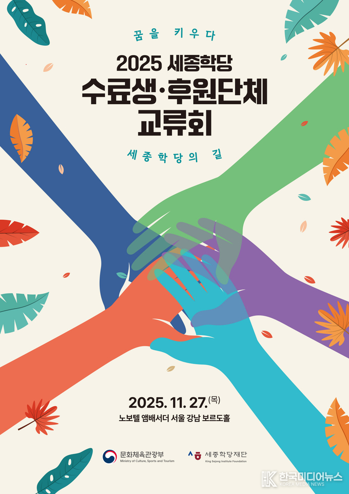 [ 한국미디어뉴스 이원영 기자 ] 세종학당재단(이사장 직무대리 사무총장 최현승)은 11월 27일(목), 노보텔 앰배서더 서울 강남에서 ‘2025 세종학당 수료생·후원단체 교류회’를 개최한다.