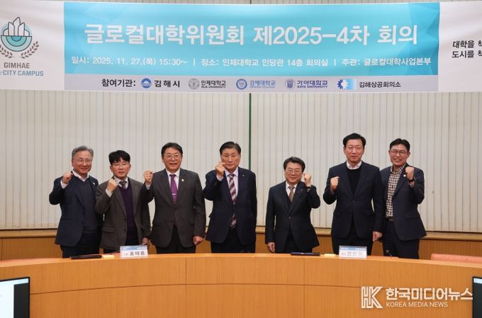 [ 한국미디어뉴스 이원영 기자 ] 김해시와 인제대학교는 27일 인제대학교 본관에서‘2025년 제4차 글로컬대학 위원회’를 개최했다. 위원회는 김해시, 인제대학교, 가야대학교, 김해대학교, 김해상공회의소의 기관장으로 구성돼 지역-산업체-대학 협력의 컨트롤 타워 역할을 맡고 있다.