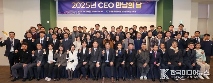 [ 한국미디어뉴스 이원영 기자 ] 인천광역시교육청은 11월 28일 인천 지역 직업계고 학생 채용에 기여한 우수기업 대표들을 초청해 ‘2025 CEO 만남의 날’을 개최했다.