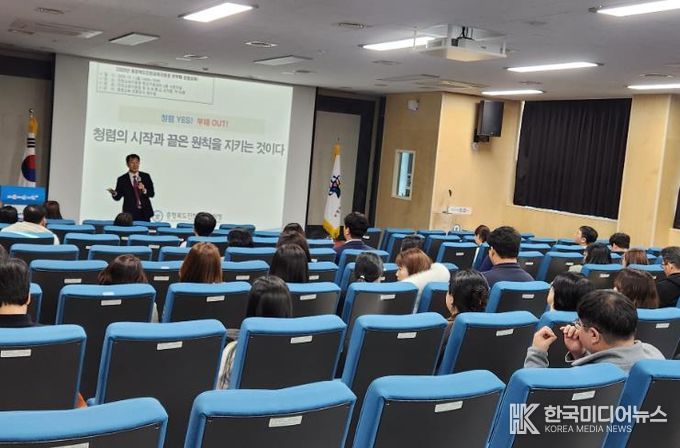교육에는 관내 각급학교 교직원과 교육지원청 전직원이 참여했으며, ▲청탁금지법 ▲이해충돌방지법 ▲공익신고자보호법 ▲적극행정 ▲직장 내 괴롭힘 관련 운영실태 및 조직문화의 합리적 개선방향을 중심으로 진행됐다.