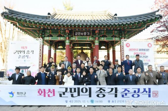 [ 한국미디어뉴스 이원영 기자 ] 화천군민의 화합과 안녕을 염원하는 ‘화천군민의 종’과 종각이 1일 처음으로 모습을 드러냈다.