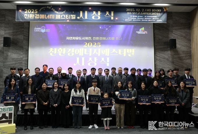 [ 한국미디어뉴스 김풍옥 기자 ] 충북도와 제천시가 공동으로 주최하고 (사)충북에너지산학융합원이 주관한 ‘2025 친환경에너지 페스티벌’ 부대행사 입상자 및 유공자에 대한 시상식이 12월 2일 청주오스코에서 개최됐다.