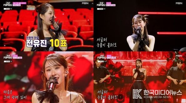 [ 한국미디어뉴스 이원영 기자 ] 가수 전유진이 ‘한일톱텐쇼’에 출연해 고혹적인 무대를 선사했다.