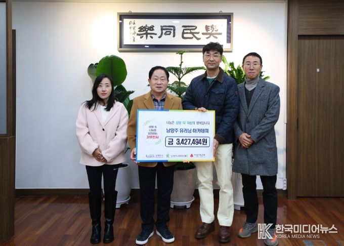 [ 한국미디어뉴스 김서안 기자 ] 남양주시는 12월 3일 남양주시 유러닝 아카데미가 러닝 마일리지로 모은 후원금 3,427,494원을 남양주시복지재단에 전달했다고 밝혔다.