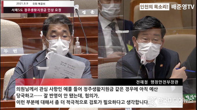 2) ‘21.09.09 예결위에서 전해철 행안부 장관, 기재부 2차관 질의