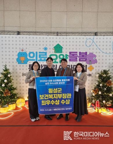 [ 한국미디어뉴스 이원영 기자 ] 횡성군은 한국보건복지인재원이 주관한 ‘2025년 의료요양돌봄 통합지원 실천 우수사례 공모전’에서 '보건소 협업을 통한 통합돌봄 선순환 구축 사례'로 최우수상(보건복지부장관상)에 선정됐다고 밝혔다.