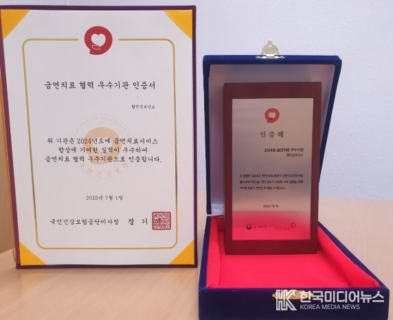 [ 한국미디어뉴스 이원영 기자 ] 함안군보건소는 국민건강보험공단이 주관한 2025년 금연치료지원사업 평가에서 ‘금연치료 협력 우수기관’에 선정돼 인증서와 인증패를 받았다.