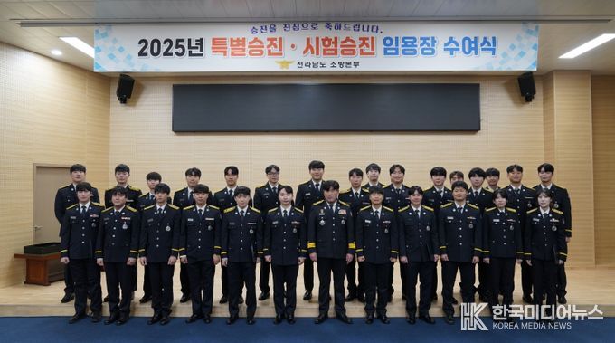 [ 한국미디어뉴스 이종철 기자 ] 전남소방본부(본부장 주영국)는 12월 5일 전남소방학교 인재관 대강당에서 특별승진 및 시험승진에 대한 임명장 수여식을 개최했다.
