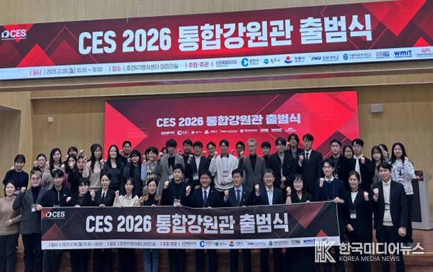[ 한국미디어뉴스 이원영 기자 ] 강원특별자치도는 12월 8일 춘천 ICT벤처타운에서 ‘CES 2026 통합강원관 출범식’을 개최하고, 내년 1월 미국 라스베이거스에서 열리는 세계 최대 IT·가전 전시회 ‘CES 2026’ 참가 준비에 본격 돌입했다.