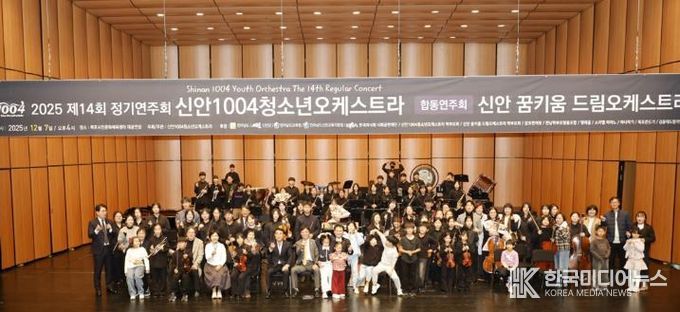 [ 한국미디어뉴스 이원영 기자 ] 신안군 섬 지역 청소년들의 예술적 성장을 이끌어 온 ‘신안1004청소년오케스트라’와 ‘신안 꿈키움 드림오케스트라’가 지난 7일 목포시민문화체육센터 대공연장에서 제14회 정기연주회 ‘천사들의 열네 번째 이야기’를 성공적으로 마무리했다.