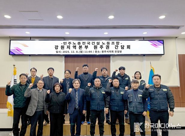 [ 한국미디어뉴스 이원영 기자 ] 원주시의회 곽문근 부의장은 8일 오전 11시 민주노총 전국건설노동조합 강원지역본부 원주권 관계자들과 함께 ‘건설현장 4대악 근절을 위한 정책 간담회’를 개최하고 불법하도급·불법고용·체불·중대재해 등 4대악 해소를 통한 지역 고용안정과 건설현장 안전 확보를 위한 정책대안과 개선 방향을 함께 모색했다.