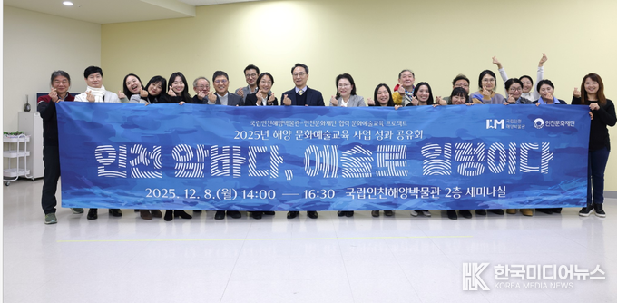 [ 한국미디어뉴스 이원영 기자 ] 국립인천해양박물관(관장 우동식)과 인천문화재단이 협력하여 추진한 ‘2025년 해양 문화예술교육 사업’ 성과 공유회가 12월 8일(월) 성황리에 개최했다고 9일 밝혔다,