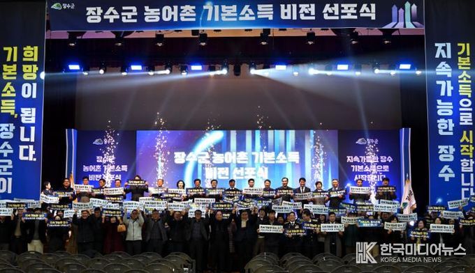 [ 한국미디어뉴스 이원영 기자 ] 장수군은 8일 한누리전당 산디관에서 ‘농어촌 기본소득 비전 선포식’ 행사가 성황리에 개최됐다고 밝혔다.