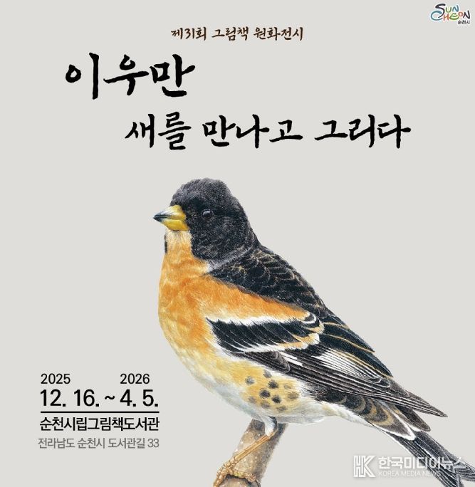 [ 한국미디어뉴스 이종철 기자 ] 순천시는 오는 16일부터 2026년 4월 5일까지 순천시립그림책도서관에서 제31회 그림책 원화전시 '이우만 새를 만나고 그리다' 를 개최한다.
