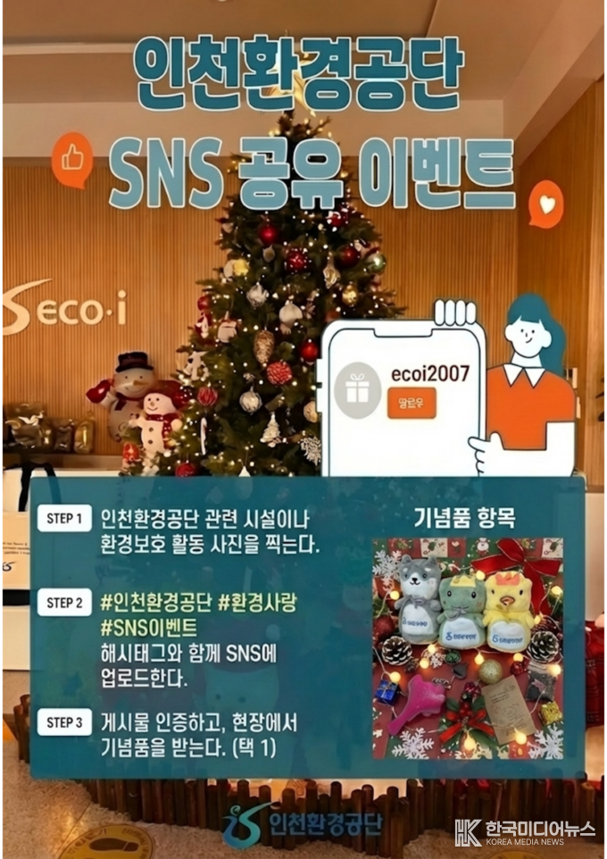 [ 한국미디어뉴스 이원영 기자 ] 인천환경공단(이사장 김성훈)은 오는 31일까지 공단 주요 환경교육시설 (남항, 청라, 송도)을 방문하는 시민들을 대상으로‘SNS 인증 공유 이벤트’를 진행한다.