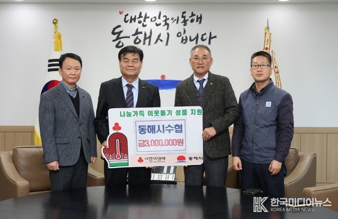[ 한국미디어뉴스 이원영 기자 ] 동해시수산업협동조합(조합장 김동진)은 지난 11월 김장김치 기탁에 이어 다시한번 지역사회 나눔에 희망2026나눔캠페인에 동참하며 이웃돕기 성금 300만원을 동해시에 기탁했다.