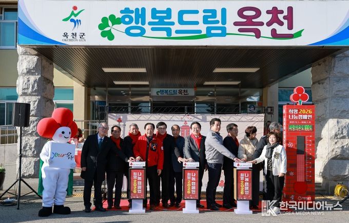 [ 한국미디어뉴스 김풍옥 기자 ] 옥천군은 12월 1일부터 내년 1월 31일까지 62일간 진행되는 '희망2026나눔캠페인'에 동참하고자 12일을 ‘옥천군 나눔 참여의 날’로 지정하고 옥천군청 광장에서 군민 참여 행사를 열었다.
