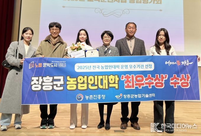 [ 한국미디어뉴스 이종철 기자 ] 장흥군은 지난 11일 농촌진흥청이 주관하는 ‘2025년 농업인대학 운영 우수기관 발표 경진대회’에서 최우수 기관에 선정됐다.