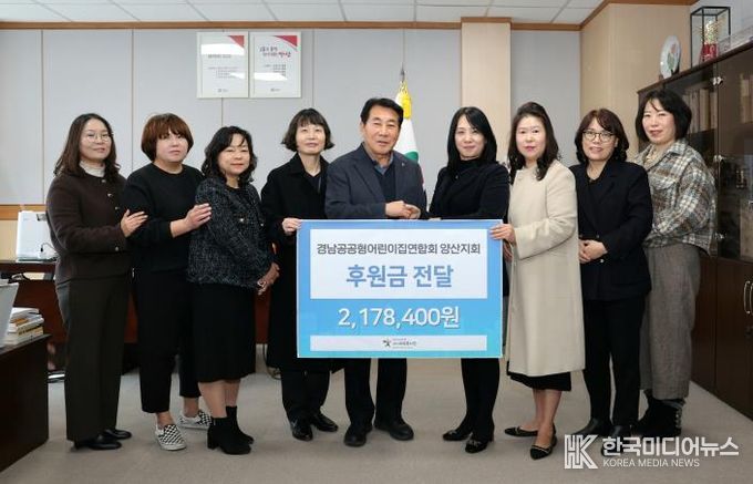 [ 한국미디어뉴스 이원영 기자 ] 양산시공공형어린이집은 15일 양산시를 방문해 24명의 회원들의 마음을 담은 후원금 2,178,400원을 시나브로복지관 ‘발달지연 조기발견 아이보듬사업’에 전달했다.