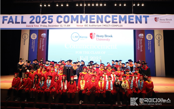 [ 한국미디어뉴스 이원영 기자 ] 한국뉴욕주립대학교(총장 아써 리)가 지난 12일 인천글로벌캠퍼스(IGC) 대강당에서 2025학년도 가을학기 졸업식을 개최했다고 16일 밝혔다.