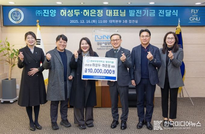 ㈜진양(대표 허성두·허은정)은 경상국립대학교가 경남을 대표하는 국가거점국립대학으로서 미래 개척 인재를 양성하여 지역 발전과 혁신의 구심점이 되기를 응원하기 위해 기금을 출연한다고 밝혔다.