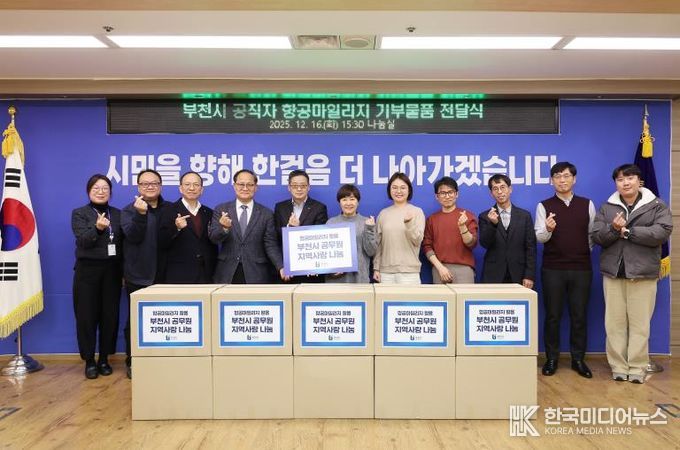 [ 한국미디어뉴스 이원영 기자 ] 부천시는 지난 16일 직원들이 보유한 항공마일리지를 활용해 물품을 구매하고 이를 지역 복지시설에 기부하는 연말 나눔 행사를 열었다. 이번 행사는 공적 항공마일리지를 사회공헌 활동에 활용하고, 연말을 맞아 지역사회 나눔 문화 확산에 기여하기 위해 추진됐다.