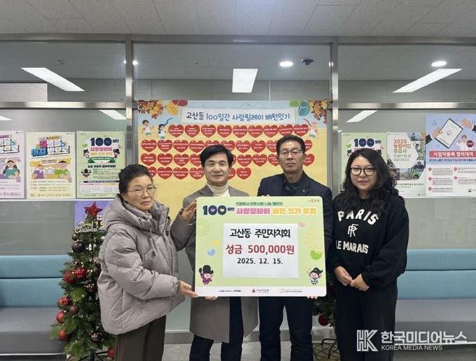 [ 한국미디어뉴스 김서안 기자 ] 의정부시 고산동주민센터는 12월 15일 고산동 주민자치회가 저소득층을 위한 성금 50만 원을 전달하며 ‘100일간 사랑릴레이 배턴 잇기’에 참여했다고 밝혔다.