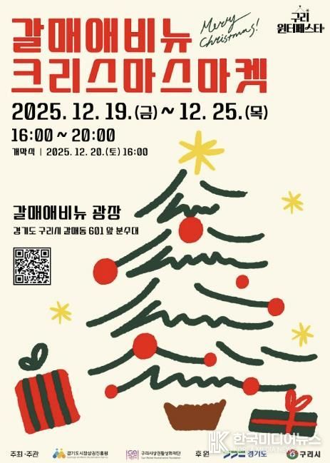 [ 한국미디어뉴스 이원영 기자 ] 구리시상권활성화재단은 오는 12월 19일부터 25일까지 갈매 애비뉴 광장에서 ‘2025 구리윈터페스타–갈매애비뉴 크리스마스 마켓’을 개최한다고 밝혔다.