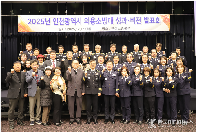 [ 한국미디어뉴스 이원영 기자 ] 인천소방본부(본부장 임원섭)는 지난 16일 항동 소재 하버파크호텔에서 소방공무원, 의용소방대원 등 160여명이 참석한가운데『2025년 의용소방대 성과비전 발표회』를 개최했다고 17일 밝혔다.