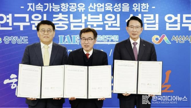 [ 한국미디어뉴스 이원영 기자 ] 충남 서산시는 지난 17일 충남도청 상황실에서 지속가능항공유 산업 육성을 위한 ‘고등기술연구원 충남분원 설립 업무협약’을 체결했다고 밝혔다.