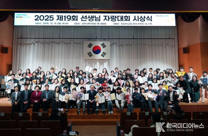 부산광역시교육청과 부산지역사회교육협의회(회장 박종필)는 지난 15일 오후 남부교육지원청 대강당에서 ‘제19회 2025 선생님 자랑대회 시상식’을 개최했다.