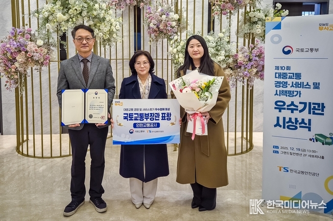 [ 한국미디어뉴스 이원영 기자 ] 인천교통공사(사장 최정규)는 국토교통부가 실시한 ‘2024년 대중교통 경영·서비스 평가’에서 철도·도시철도 부문 우수기관으로 선정돼 국토교통부 장관상을 받았다고 19일 밝혔다.