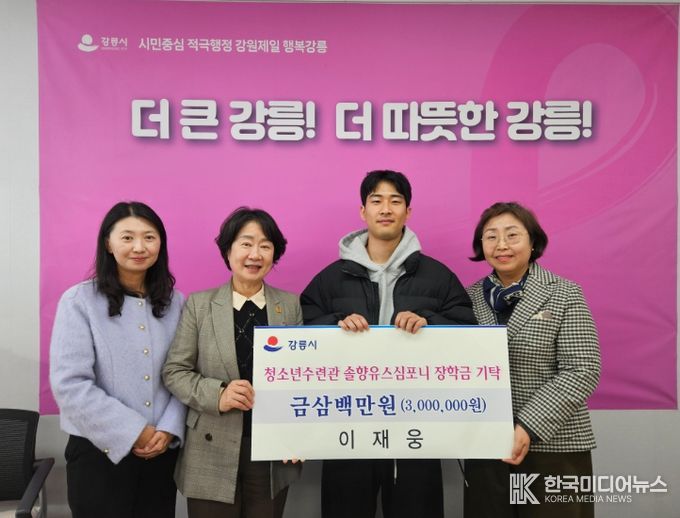 [ 한국미디어뉴스 이원영 기자 ] 강릉 출신 대학생 작곡가 이재웅(24세) 씨가 지난 19일 지역 청소년의 예술 활동을 지원하기 위해 강릉시청소년수련관이 운영하는 솔향유스심포니 오케스트라에 기탁금 300만 원을 전달했다.