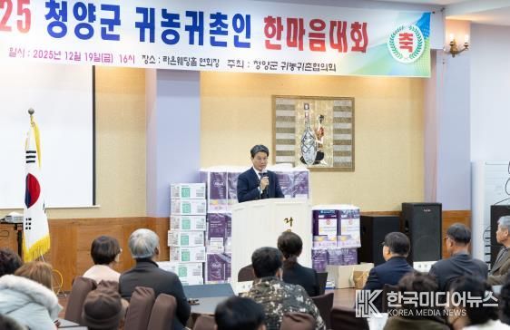 [ 한국미디어뉴스 이원영 기자 ] 귀농·귀촌인의 안정적인 지역 정착을 도모하고, 지역 주민과의 화합과 소통을 강화하기 위한 ‘2025 청양군 귀농·귀촌인 한마음 대회’가 지난 19일 청양읍 라온웨딩홀에서 성황리에 열렸다.