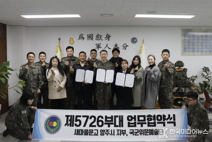[ 한국미디어뉴스 김서안 기자 ] 새마을문고 양주시지부는 지난 12월 19일, 육군 제5726부대에서 군 장병들의 독서문화 확산과 인문학적 소양 증진을 위한 업무협약(MOU)을 체결했다고 밝혔다.
