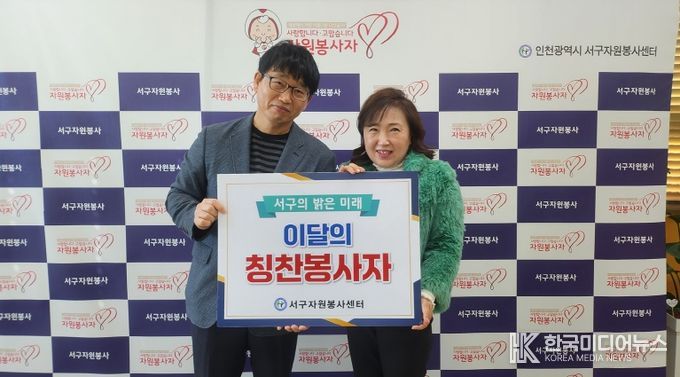 [ 한국미디어뉴스 이원희 기자 ] 인천서구자원봉사센터는 지역사회 발전을 위해 여러 분야에서 다양한 봉사활동에 참여한 자원봉사자를 격려하고 자원봉사 문화를 확산하기 위한 ‘자원봉사 칭찬릴레이’를 매월 실시하고 있다.