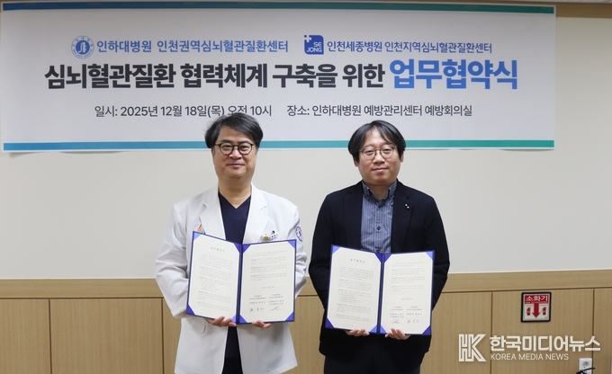 협약은 지역심뇌혈관질환센터인 인천세종병원과 권역심뇌혈관질환센터인 인하대병원이 ▲24시간 365일 심뇌혈관질환 진료체계 운영 ▲심뇌혈관질환 인력교육 대중홍보 사업 ▲심뇌혈관질환 진료체계 구축 등에 협력하는 내용을 담고 있다.